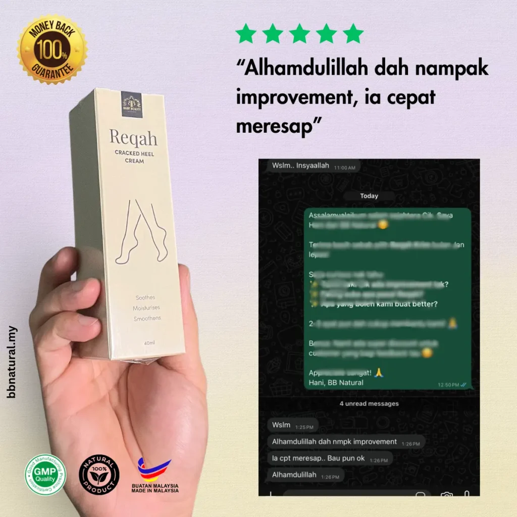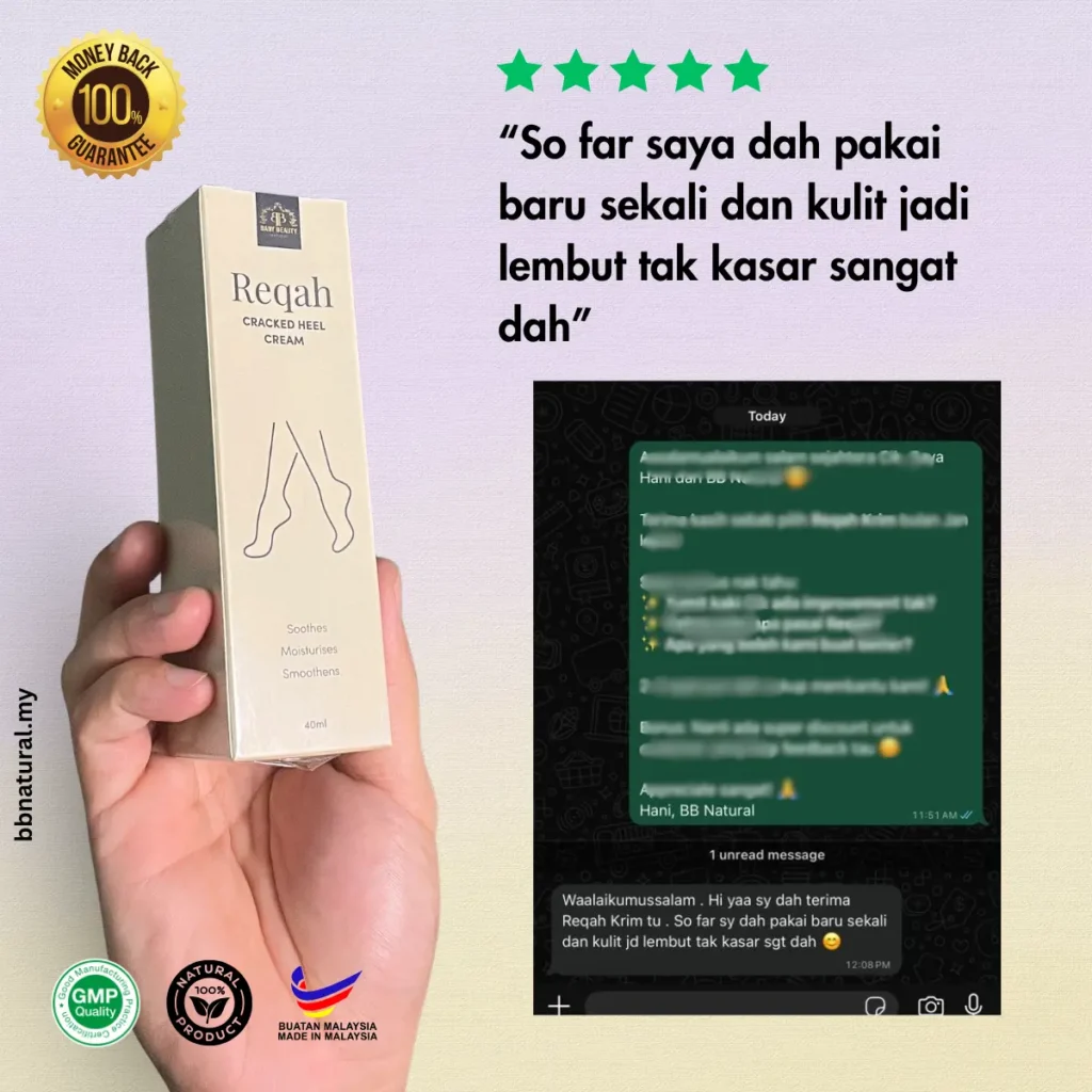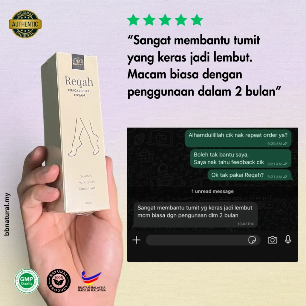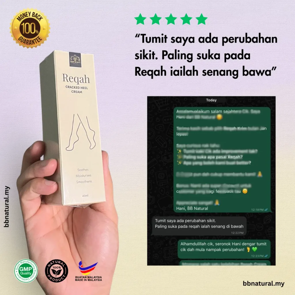 Reqah bukan sekadar krim tumit biasa. Ia adalah rawatan intensif yang dirumus khas untuk meresap jauh ke dalam lapisan kulit, membaiki rekahan dari dalam dan memberi perlindungan jangka panjang.