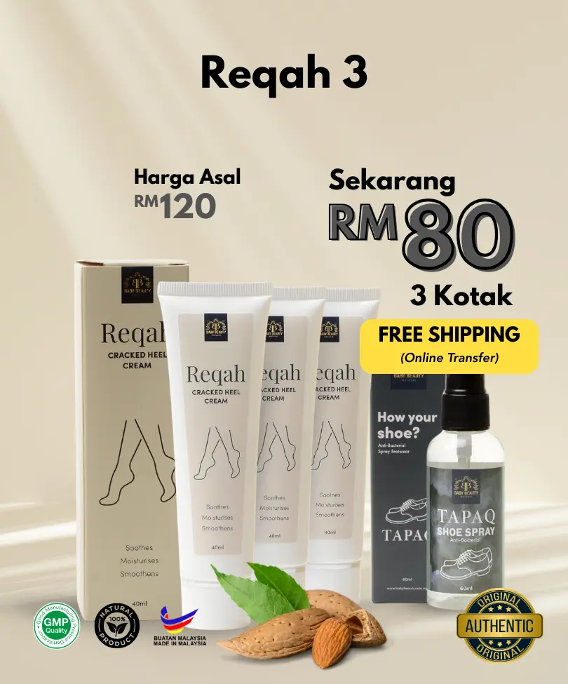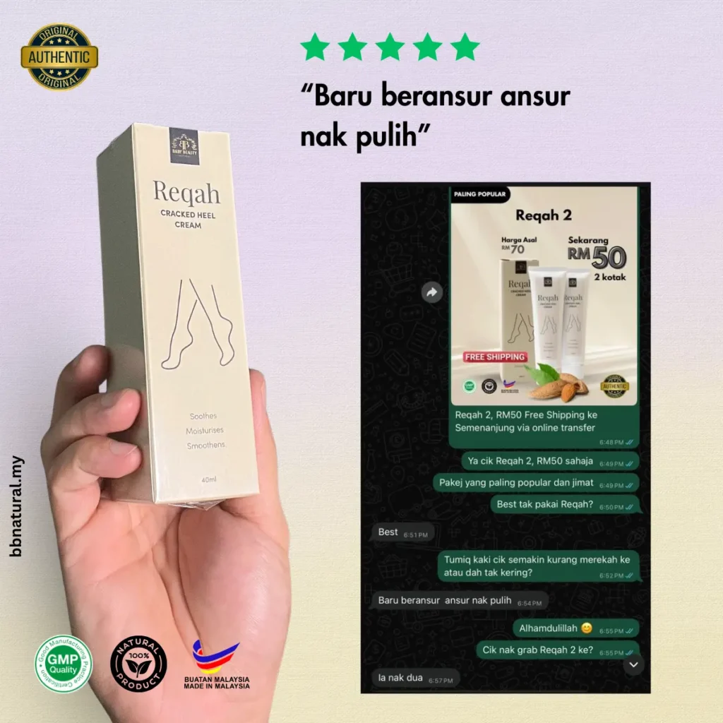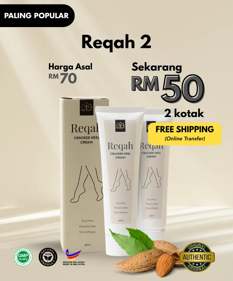 2️⃣ Sapu Reqah Cream pada bahagian tumit atau area yang kering